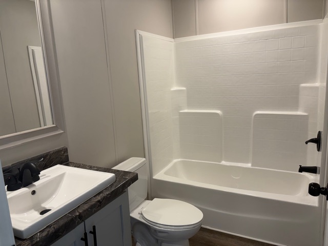 - Easy-care wood-style flooring throughout the main area and bedrooms